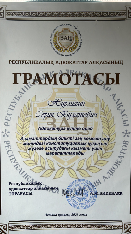 Контакты: г. Алматы ул. Шевченко, 102 н/п 4 тел. 87471506840 , e-mail nurlikhinadvocate@gmail.com